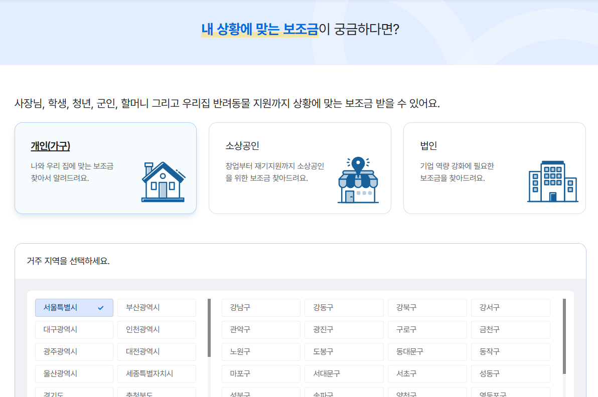 보조금 검색 및 선택 방법 🔎