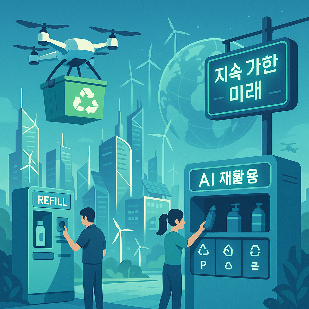 국내에서도 환경부가 2025년부터 리필스테이션 확대 정책을 발표하며 제로웨이스트 경제를 전방위적으로 지원하고 있습니다. 또한, 2025년 팬톤 컬러인 **Peach Fuzz**와 **Lime Green**을 활용한 지속가능한 디자인 제품들도 눈에 띕니다.